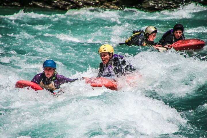 Sledge grade 3 whitewater on special river purpose boards. Sturdy, easy to hold on to, very buoyant and highly-manoeuvrable, the sledge keeps you slightly more above the water than bodyboards.